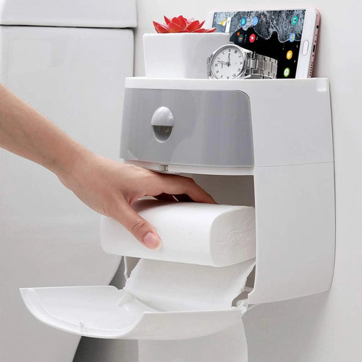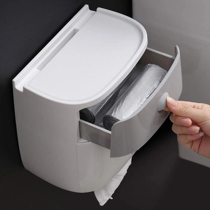 Su diseño moderno y elegante en tonos gris y blanco se adapta perfectamente a cualquier decoración, desde baños minimalistas hasta cocinas modernas. Pero no es solo su apariencia lo que lo hace especial, sino cómo simplifica tu día a día. Con una estructura de doble capa, este dispensador te ofrece una solución todo en uno: guarda toallas de papel, pañuelos, rollos, bolsas de basura e incluso tus objetos personales como jabón o tu teléfono móvil. Todo al alcance de tu mano, en un solo lugar.