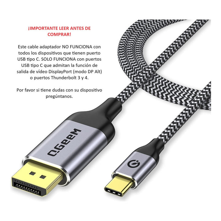 Nuestro cable funciona convirtiendo la salida de vídeo desde cualquier dispositivo USB-C compatible a una entrada DisplayPort, entregando una transmisión de imagen y sonido de altísima calidad. Diseñado para aquellos que exigen calidad visual y precisión de audio, este cable asegura una experiencia sin interrupciones.