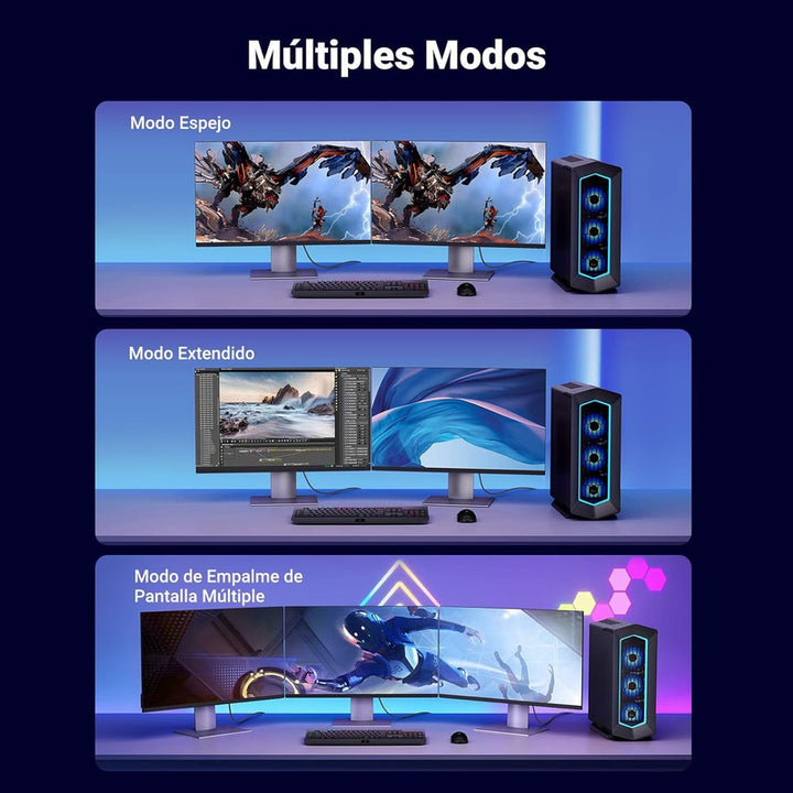 - 🔄 Modos De Pantalla Versátiles: El modo espejo y extensión te ofrecen opciones de visualización flexibles.