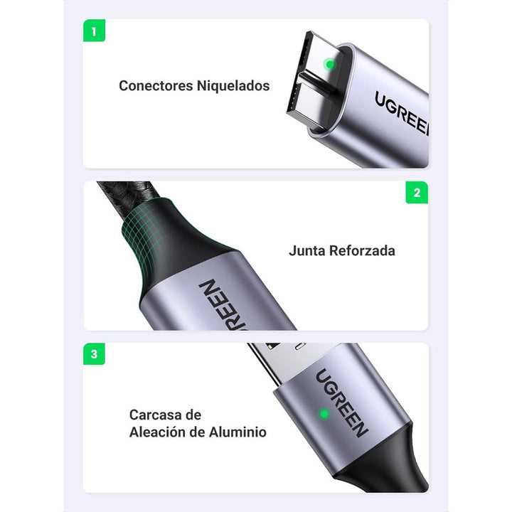 Cable Usb 3.0 A Micro B 5 Gbps Datos 1m Para Disco Duro Externo