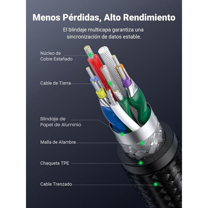 Quizás te preocupe la durabilidad. Aquí es donde este producto brilla con luz propia. Creado con un diseño trenzado de nailon, está probado para soportar más de 10,000 dobleces, asegurando que estará contigo cuando lo necesites. Los conectores chapados en oro y los conductores de cobre desnudo maximizan la calidad de la señal, asegurando que tus datos lleguen siempre intactos. 🌟