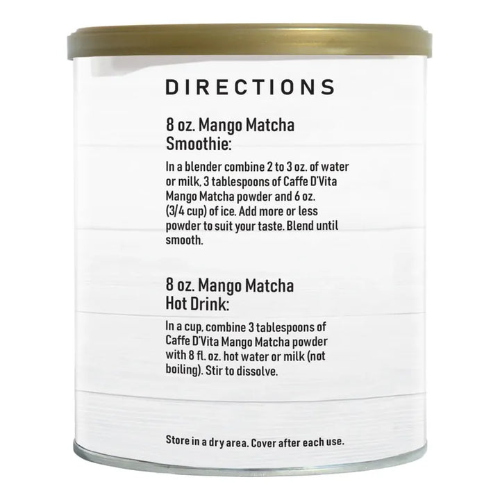 - En una taza, mezcla 1 cucharada de Café DVita Matcha Mango con 8 onzas de agua caliente o leche no hirviendo.