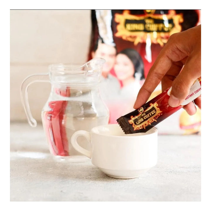 - Añade un sobre de Café King, revuelve bien y ¡disfruta al instante!