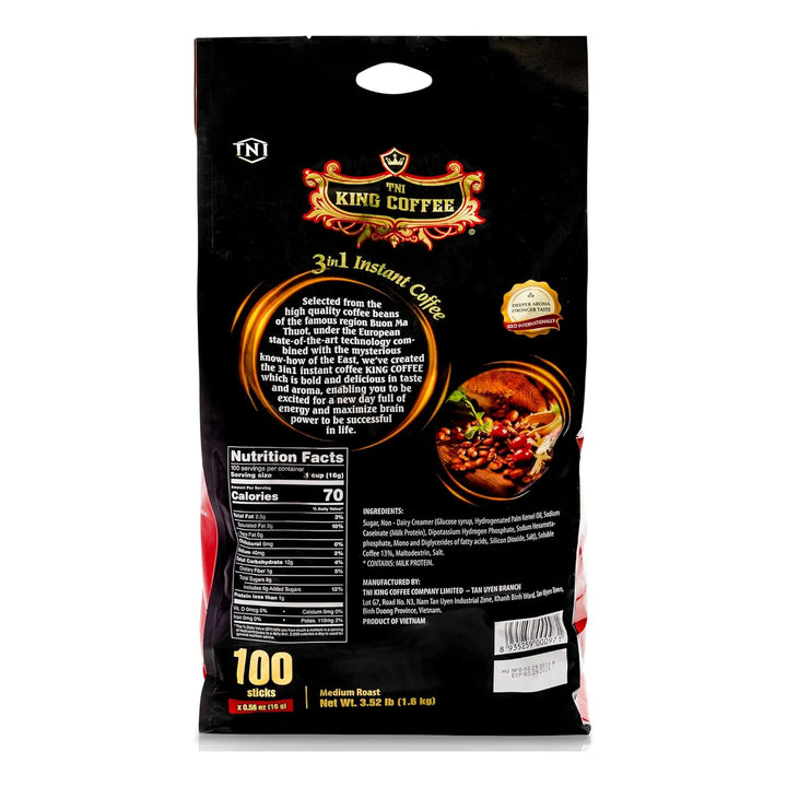 Café Vietnamita Instantáneo 3 En 1 TNI King Coffee 100 Sobres Sabor Premium
