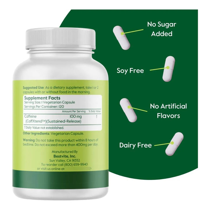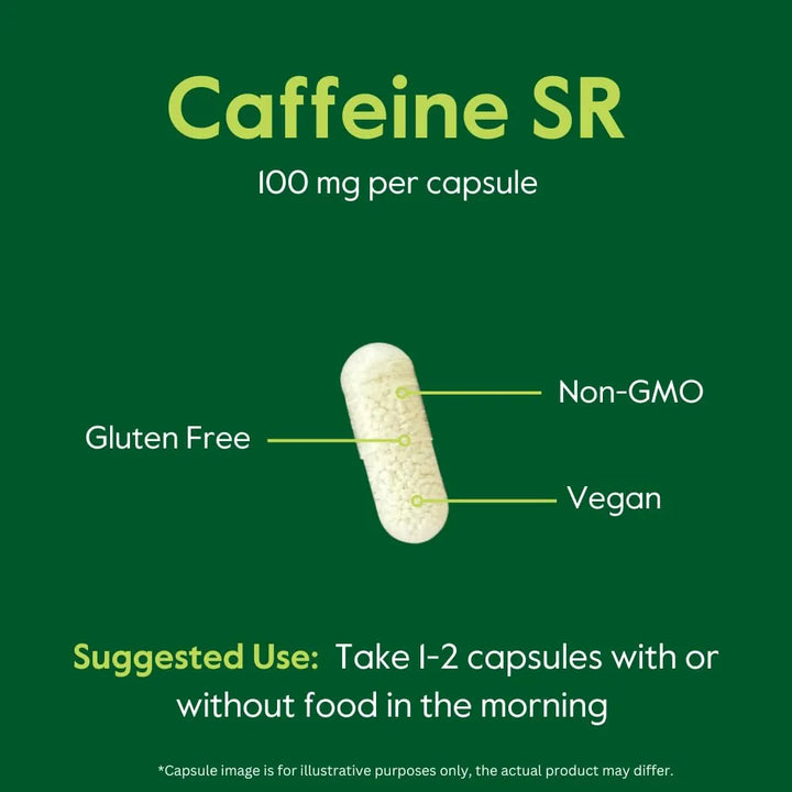 Cafeína 100 Mg SR 120 Cápsulas Vegetarianas Liberación Sostenida Vegana Sin OMG