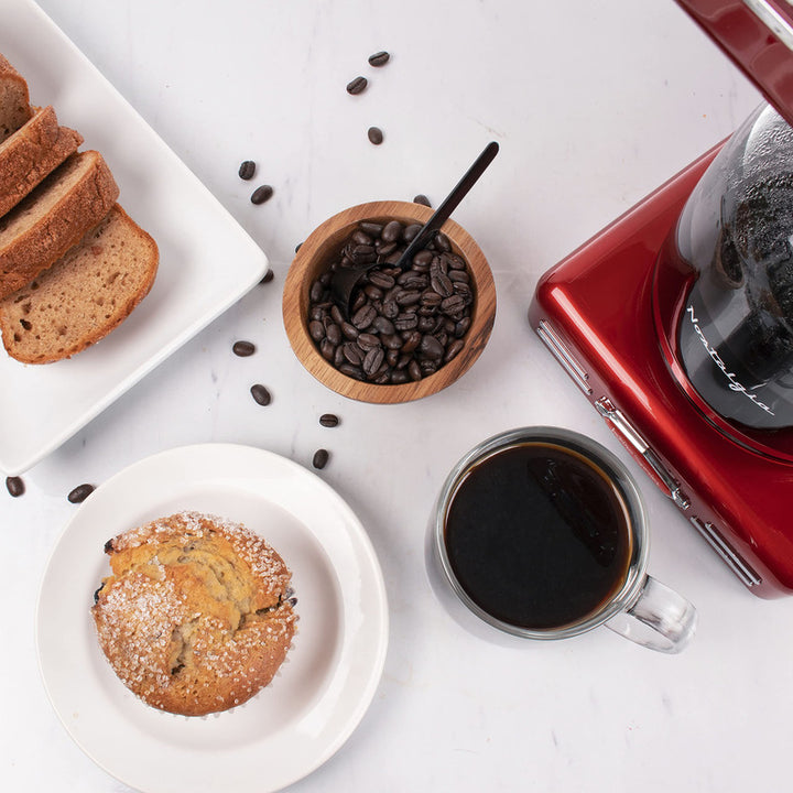 La Cafetera Nostalgia Retro utiliza su temporizador programable para calentar agua de manera precisa y mezclarla con café molido. A través de un filtro, permite que el aroma y sabor se desplieguen, llenando cada taza con la perfección que solo un amante del café apreciaría plenamente.