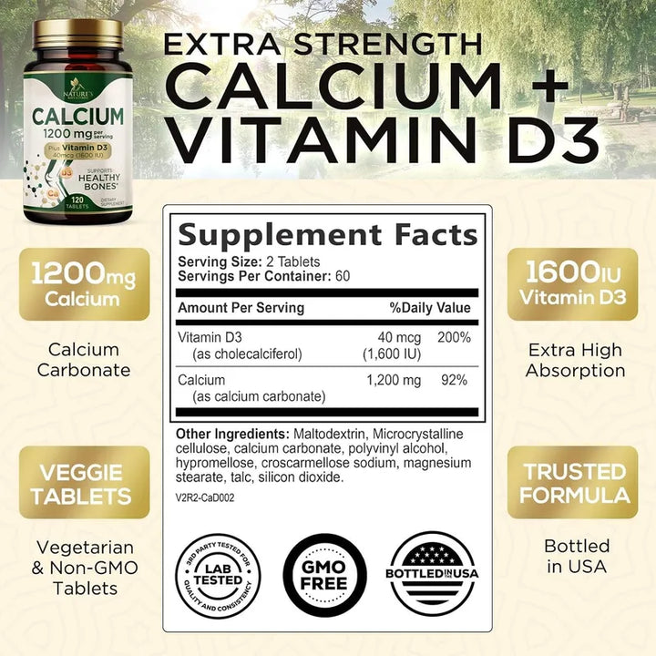 Calcio 1200 Mg Con Vitamina D3 Suplemento Para Salud Ósea Y Dental