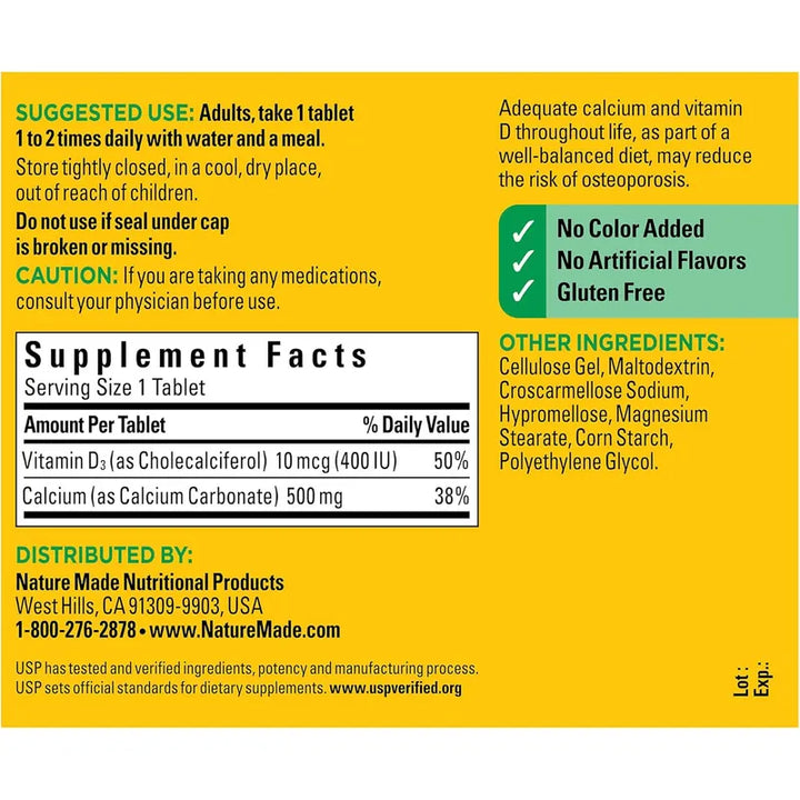 ¿Sabías que tu cuerpo necesita vitamina D3 para absorber el calcio? Nuestro producto lo tiene cubierto. Cada tableta compuesta por 500 mg de calcio y la cantidad adecuada de vitamina D3 es la combinación perfecta para promover huesos de acero. No más preocupaciones por huesos débiles o cuidados complejos. Este suplemento está diseñado pensando en quienes valoran su bienestar.
