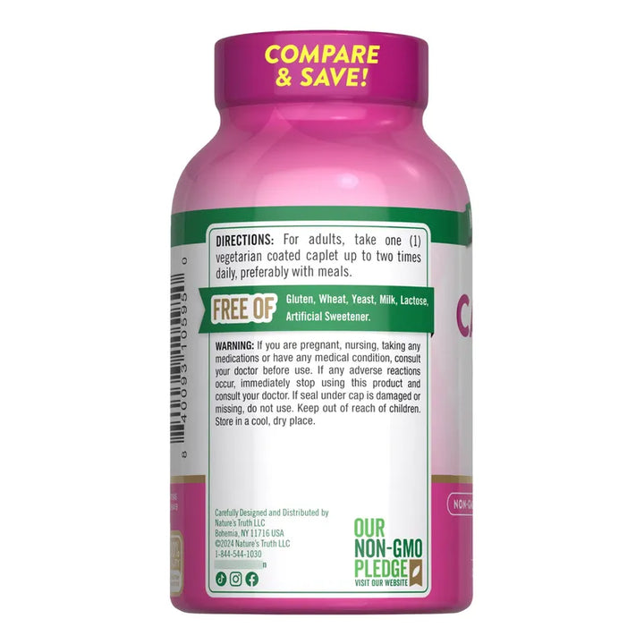 Descubre el suplemento de Calcio 600 Mg con Vitamina D3, una elección inteligente para fortalecer tu salud ósea y enriquecer tu bienestar cotidiano. Este producto de Natures Truth representa el compromiso con tu bienestar, combinando dos nutrientes esenciales en una sola fórmula. Imagínate sintiéndote más fuerte, más seguro, sabiendo que estás cuidando de tu salud con un suplemento respaldado por generaciones de expertos en vitaminas.