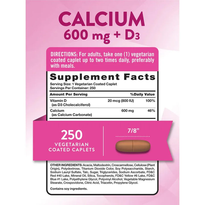 Calcio 600 Mg Con Vitamina D3 250 Comprimidos Natures Truth Suplemento Vegetariano