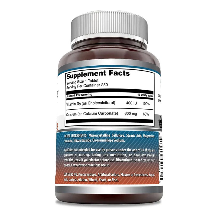 Calcio 600 Mg Vitamina D3 400 UI 250 Tabletas Beneficio Óseo Y Salud