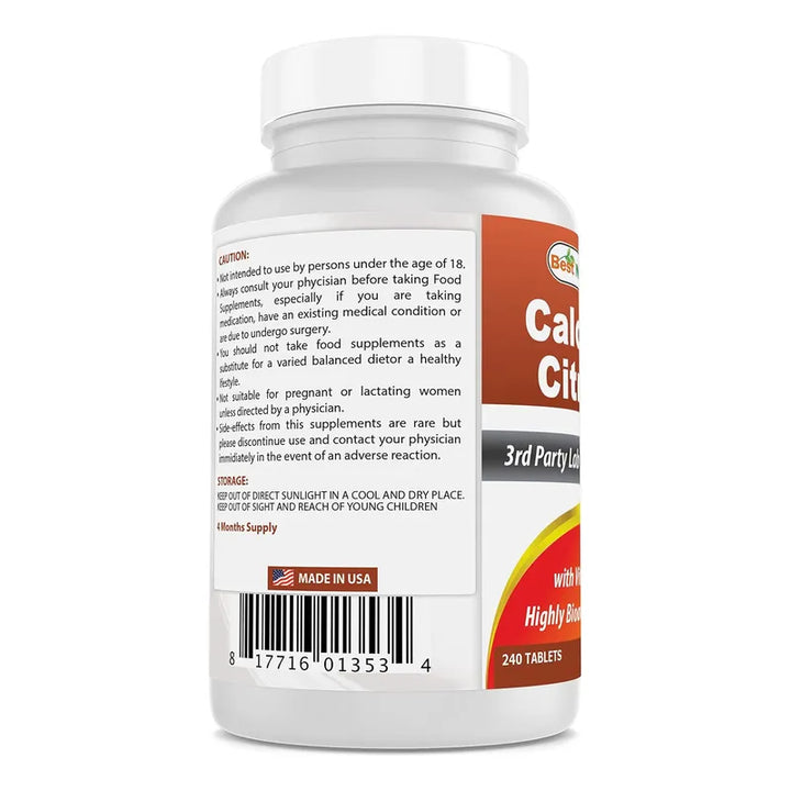 Calcio Citrato Con Vitamina D3 240 Tabletas Beneficios Óseos