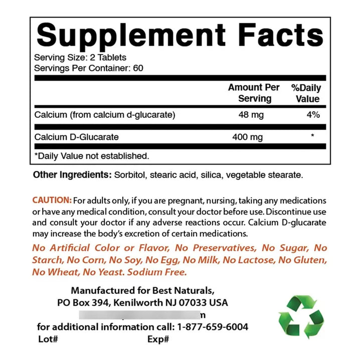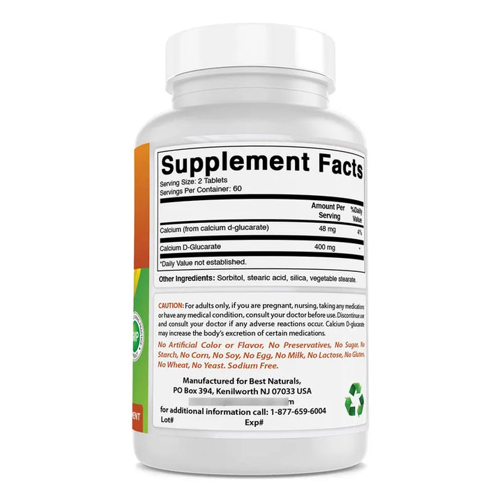 Cada tableta de Calcio D-glucarato ha sido probada en laboratorios de terceros, asegurando su pureza y calidad incomparable. Con 200 mg de D-glucarato de calcio por tableta, experimenta un suplemento sin OGM, sin gluten, y sin aditivos artificiales.