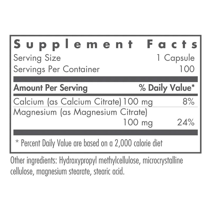 Calcio Magnesio Citrato 100 Cápsulas Vegetarianas Huesos Salud