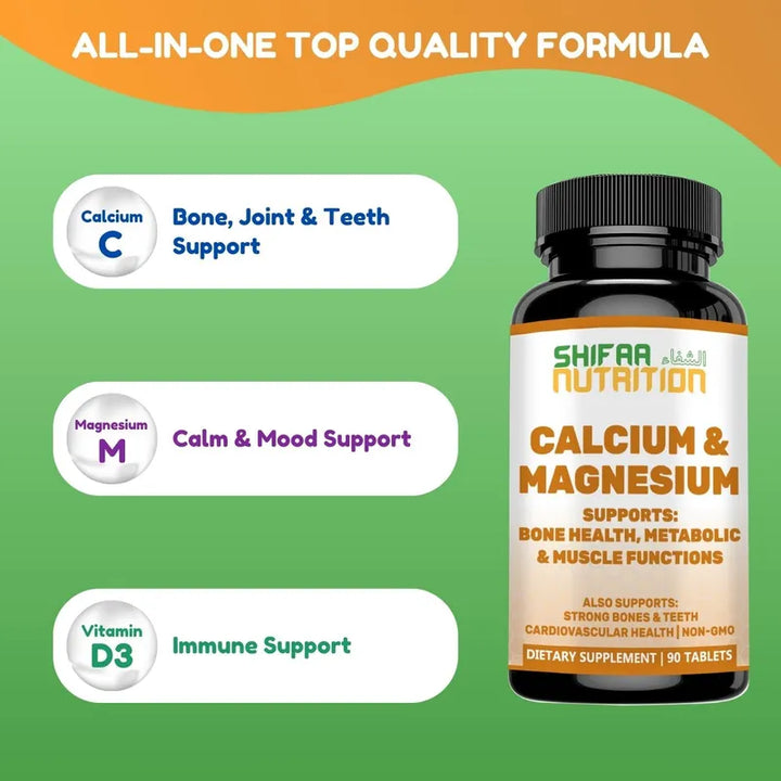 Imagina un suplemento que cuida de tus huesos, fortifica tus dientes y apoya tu salud cardiovascular, todo en un formato natural y fácil de consumir. Estamos orgullosos de presentarte el Suplemento de Calcio Magnesio Halal Vitamina D3, una fórmula exclusiva que combina lo mejor para tu salud ósea y más. Toda nuestra experiencia estadounidense se concentra en ofrecerte calidad certificada y beneficios palpables.