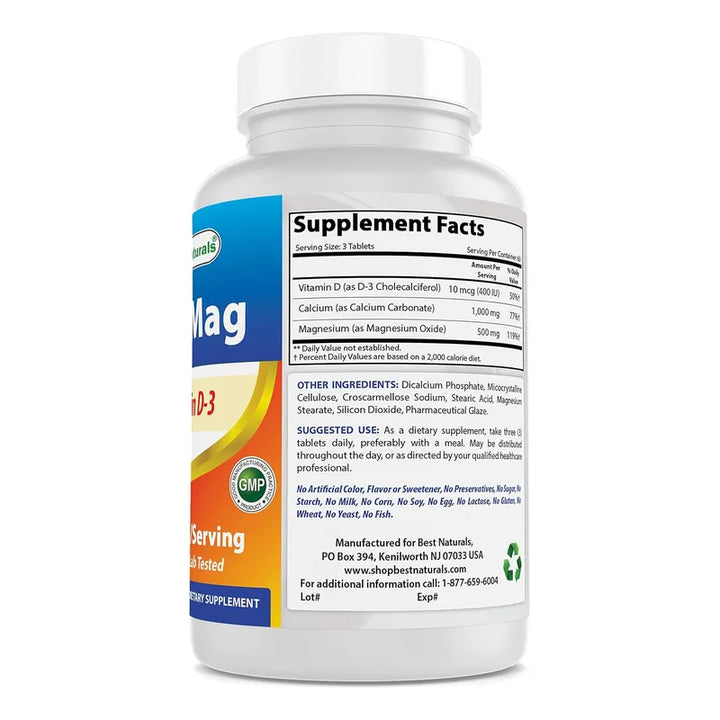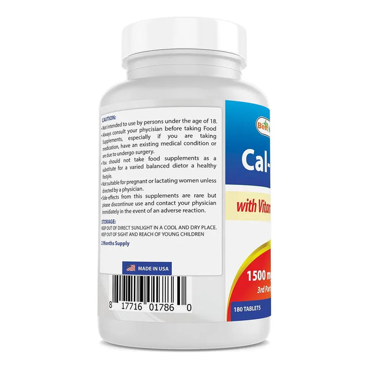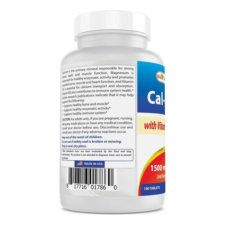 Calcio Magnesio Vitamina D3 1500mg 180 Tabletas Naturales Saludable Y Efectivo