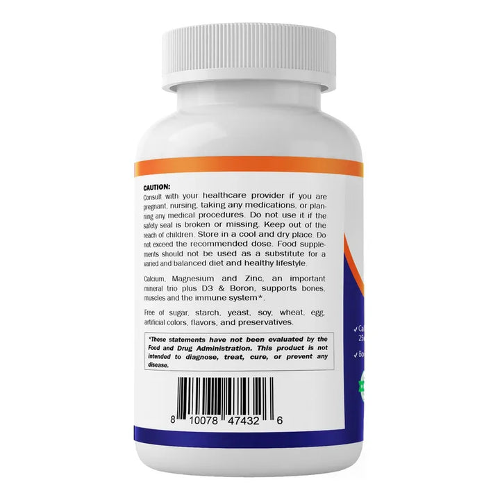 Bienvenido a un camino hacia una salud óptima con nuestro Suplemento de Calcio, Magnesio, Zinc, Vitamina D3 y Boro. Una opción completa que trabaja silenciosamente pero de manera efectiva para garantizar que tu cuerpo reciba exactamente lo que necesita, todos los días.