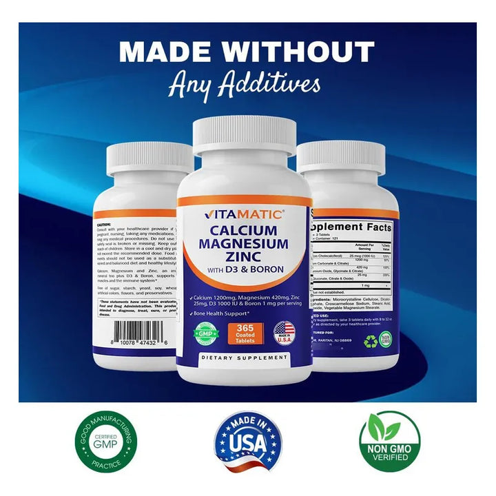 Calcio Magnesio Zinc D3 Boro 365 Tabletas Recubiertas Premium Beneficios Saludables