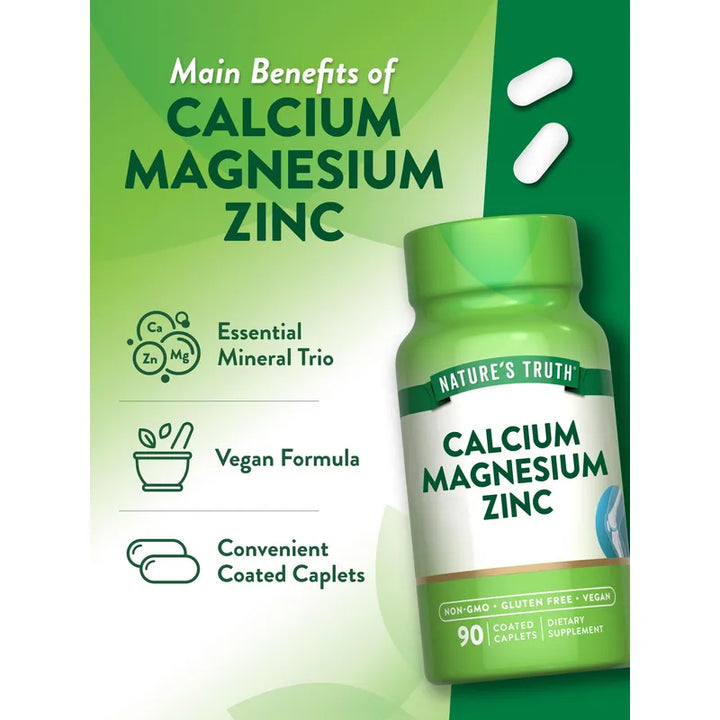 Calcio Magnesio Zinc Natures Truth Suplemento Vegano 90 Cápsulas