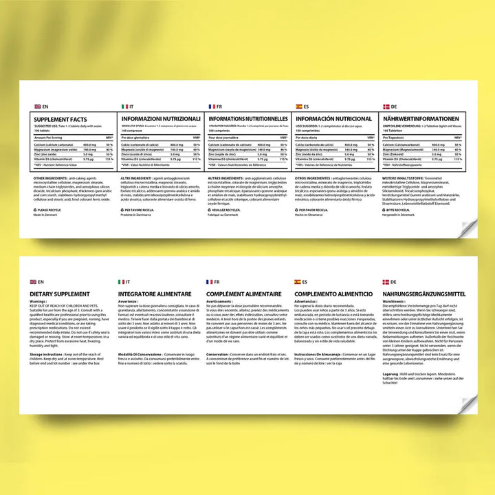 El suplemento actúa proporcionando a tu cuerpo minerales esenciales que son fácilmente absorbidos, fortaleciendo huesos y dientes mientras apoya el sistema inmunológico y nervioso. El calcio es crucial para la densidad ósea, el magnesio combate la fatiga y mejora la salud muscular, y el zinc favorece la piel, el cabello, y las uñas.