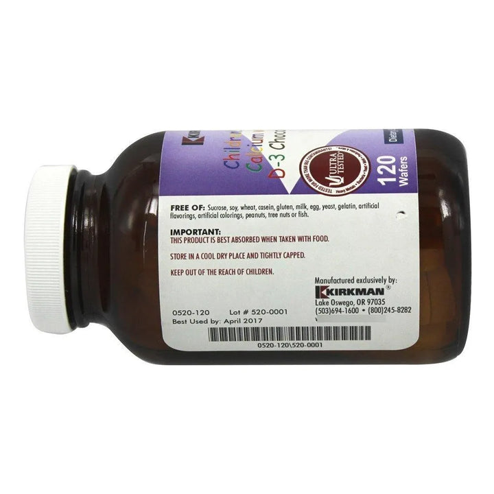 Calcio Masticable Niños Vitamina D3 Chocolate Natural 120 Tabletas