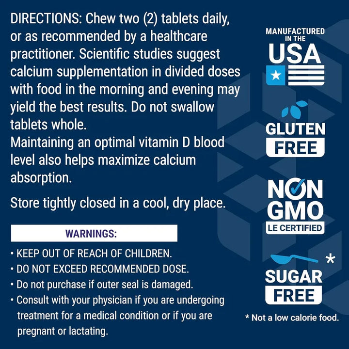 La salud de tus huesos es vital para llevar una vida sana y sin limitaciones. Con 710 mg de calcio en cada masticable, nuestro producto está diseñado para proporcionar el soporte que tus huesos necesitan. Al combinar el carbonato de calcio y el citrato de calcio, obtenemos una fórmula que refuerza la densidad y fortaleza ósea desde la raíz.