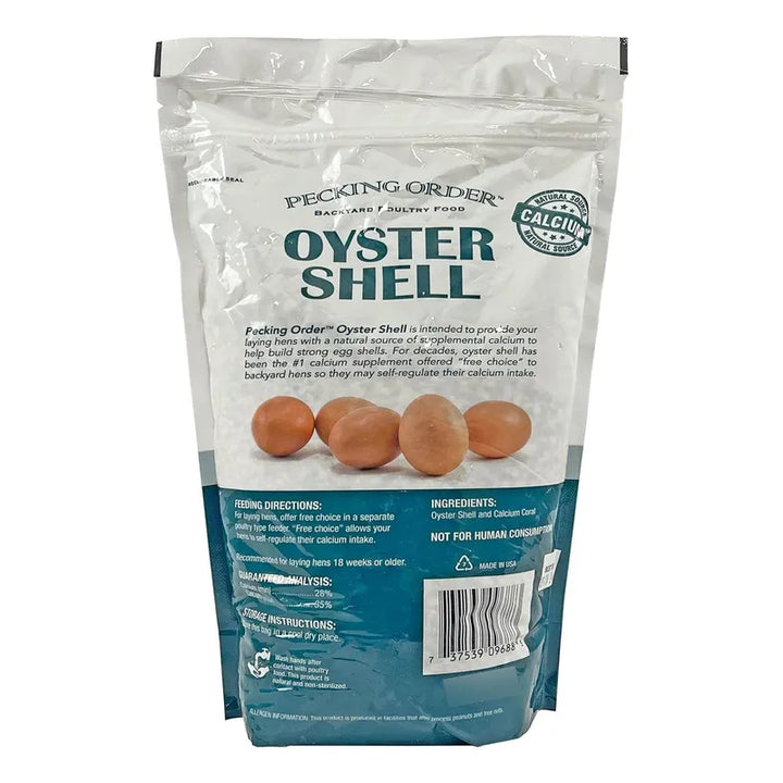 El calcio es más que cáscaras fuertes. Las gallinas necesitan este mineral para la función muscular adecuada y la transmisión nerviosa. Proveer una fuente confiable de calcio como Pecking Order Oyster Shell ayuda en numerosas funciones corporales, asegurando que tus gallinas estén siempre en su mejor forma.