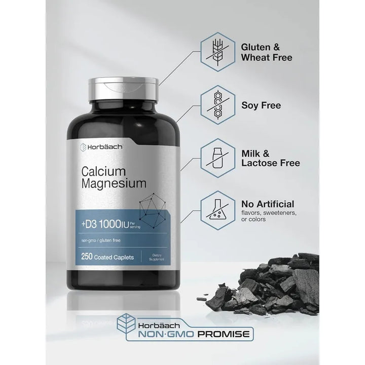 Este suplemento de Calcio y Magnesio con Vitamina D3 de Horbäach te ofrece una fórmula única y cuidadosamente elaborada por expertos en nutrición. Experimenta la paz mental que viene con saber que estás eligiendo calidad y confianza, respaldada por pruebas de laboratorio. Evita moleestar: disfruta de una solución libre de gluten, trigo, levadura, sabores artificiales y OMG.