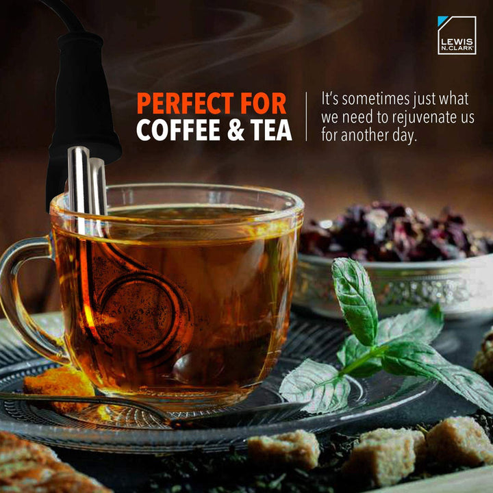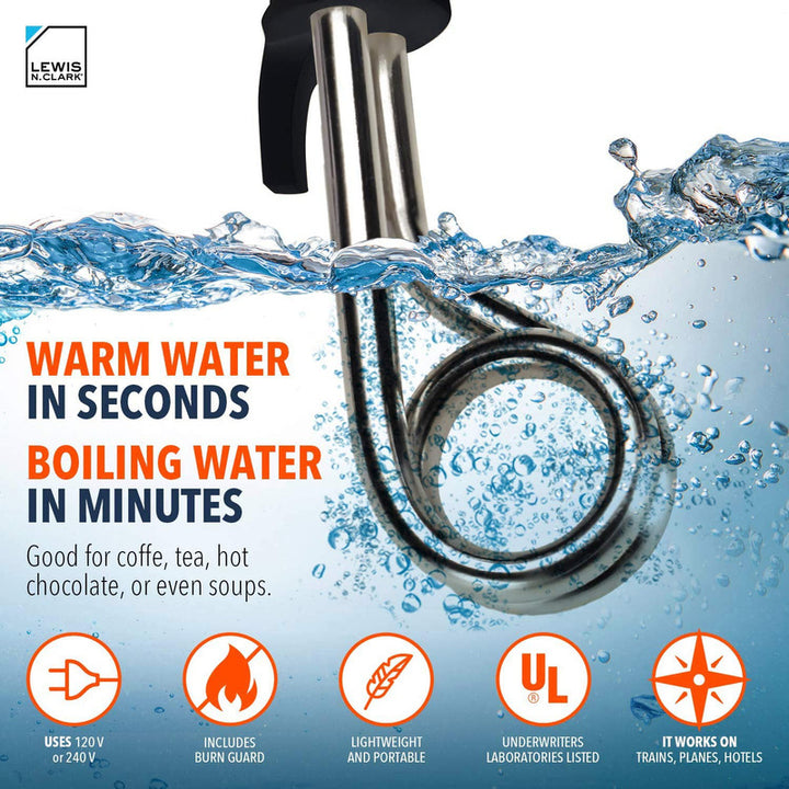 Imagina ya no tener que preocuparte por calentar agua cuando más lo necesitas. Con el Calentador De Agua De Inmersión Portátil Lewis N. Clark, hacerlo es rápido, efectivo y seguro. Perfecto para los amantes del café o el té que desean disfrutar de su bebida caliente en cualquier momento y lugar.