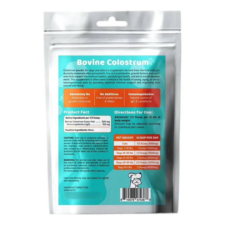Imagina poder brindar un potente apoyo inmunológico a tus mascotas, permitiéndoles disfrutar de una vida más activa y saludable. Vitamatic Calostro Bovino es justo lo que necesitas. Con un contenido de 30% de inmunoglobulinas, ofrece un refuerzo inmunitario seguro y eficaz, cada dosis actúa como un escudo protector contra enfermedades. 🛡️