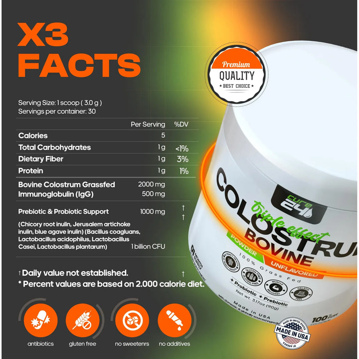 Calostro Bovino X3 Puro Polvo Superalimento Alto En IgG Probióticos EEUU