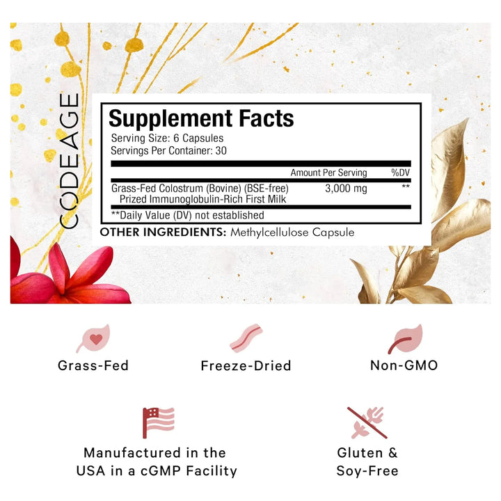 Calostro Liofilizado Codeage 3000mg Alimentado Con Pasto 180 Capsulas Fortalece Sistema Inmunologico