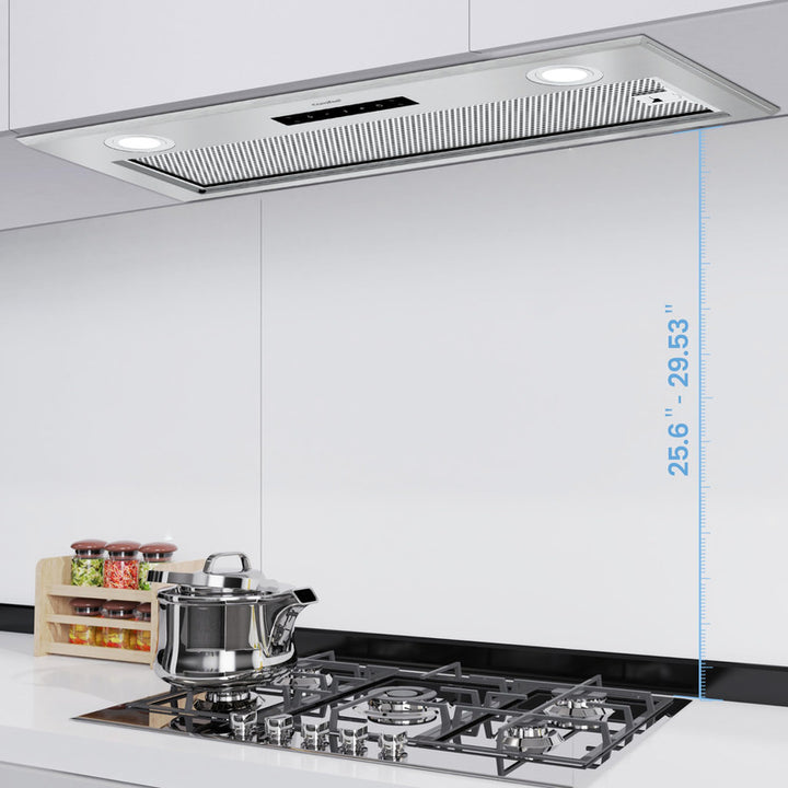 Con una succión potente de 450 CFM, olvida las molestias de los humos de cocción. Esta campana asegura que olores desagradables se eliminen rápidamente, proporcionando una atmósfera limpia para que puedas concentrarte en disfrutar de tu proceso de cocina.