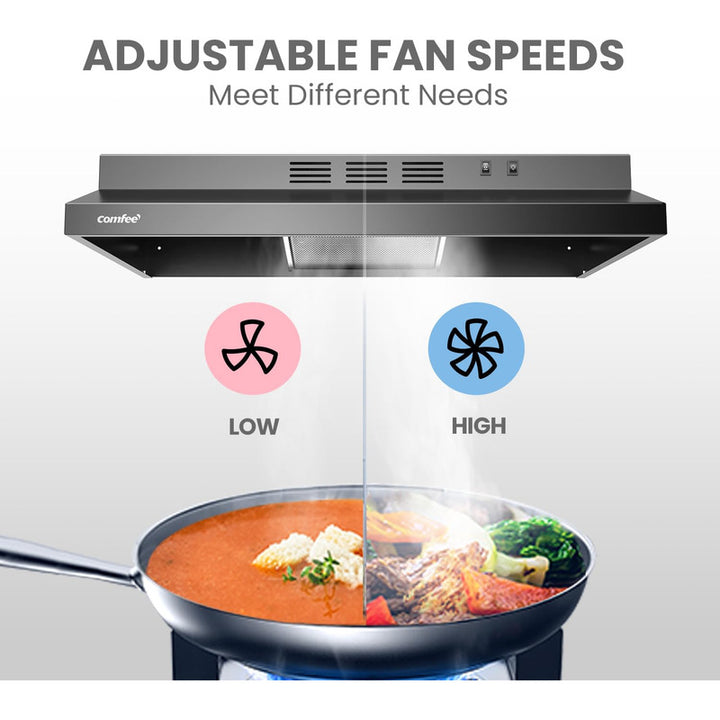 Con la campana extractora Comfee, experimentará una calidad de aire mejorada cada vez que cocine. Equipado con un ventilador de escape de 2 velocidades, este dispositivo ofrece una fuerte succión, eliminando la mayoría del humo y olores en un instante. Ahora, las comidas en casa serán solo un momento de disfrute sin lugar para la preocupación por el aire cargado. 💨