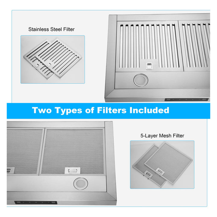 La excelencia de Everkitch se extiende a su sistema de filtración de primera calidad. Equipado con filtros deflectores de acero inoxidable aptos para lavavajillas, su mecanismo de captura de grasa garantiza eficiencia y fácil mantenimiento. Descubre la facilidad de mantener tu cocina impecable con su sistema de liberación rápida, que permite extraer y limpiar los filtros sin esfuerzo.