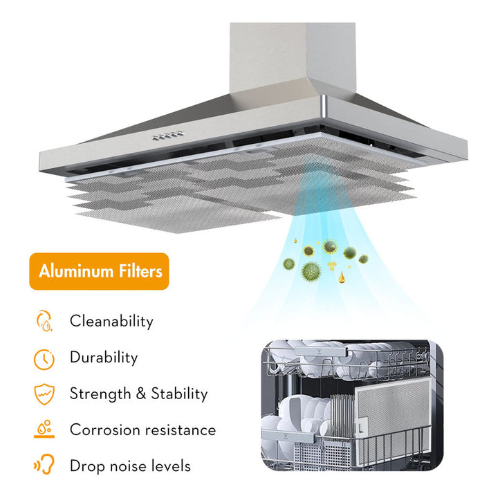 La eficiencia de los filtros permanentes que pueden limpiarse en lavavajillas te asegura que la grasa y el aceite no sean un problema. Las luces LED integradas no solo ofrecen un espacio brillante para cocinar, sino que también reducen la fatiga visual.