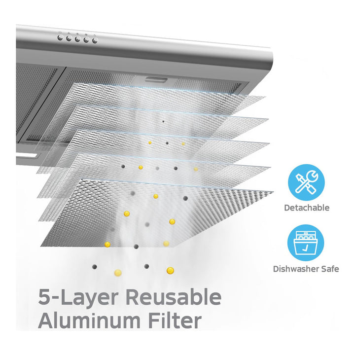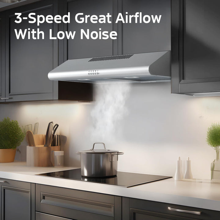 Este innovador electrodoméstico ha sido diseñado para brindar un flujo de aire potente y eficiente, gracias a su ventilador de escape de 3 velocidades que asegura un rendimiento excepcional. El impresionante flujo de aire de 100 CFM garantiza que el humo y los olores desaparezcan rápidamente, permitiéndote disfrutar de una cocina libre de contaminación y con un ambiente siempre renovado.