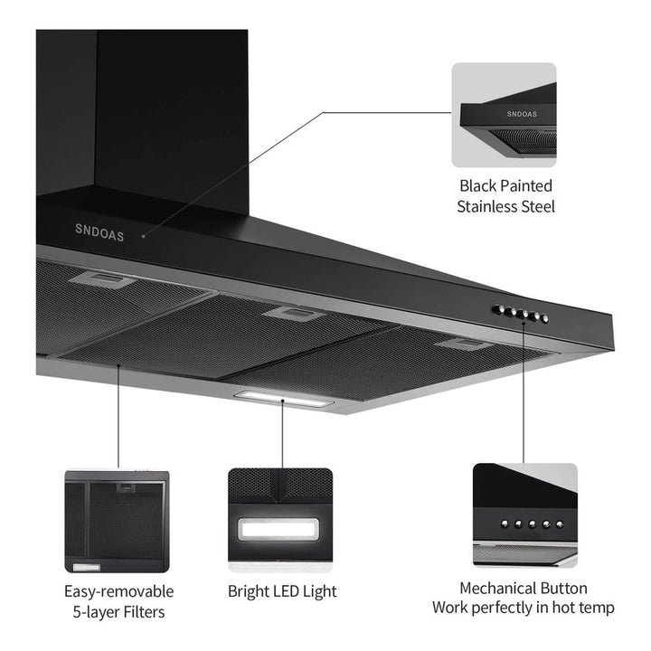 Campana Extractora SNDOAS Negra 36 Pulgadas Acero Silencioso Potente