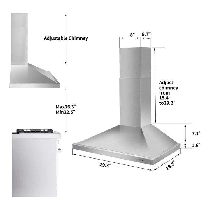 Campana Extractora Tieasy Acero Inoxidable 30 Pulgadas Alta Potencia Y Silencio