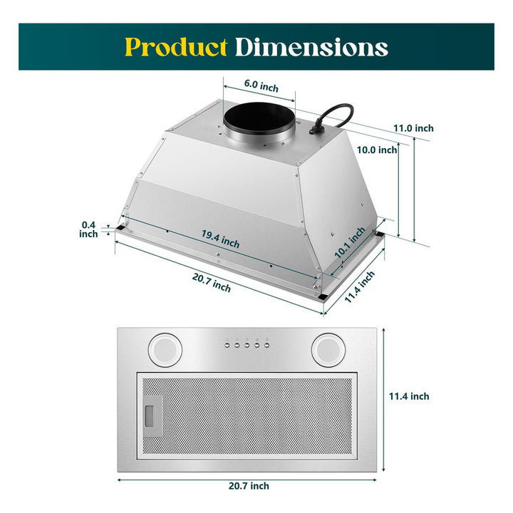 Campana Extractora Zomagas 20 Pulgadas Inserto Convertible 600 CFM