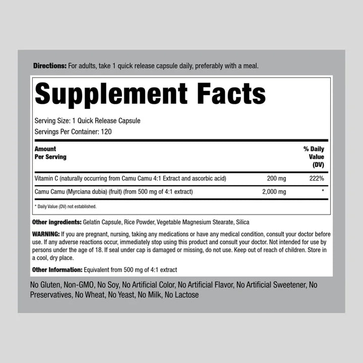 Camu Camu 2000mg Extracto De Fruta Con Vitamina C 120 Cápsulas