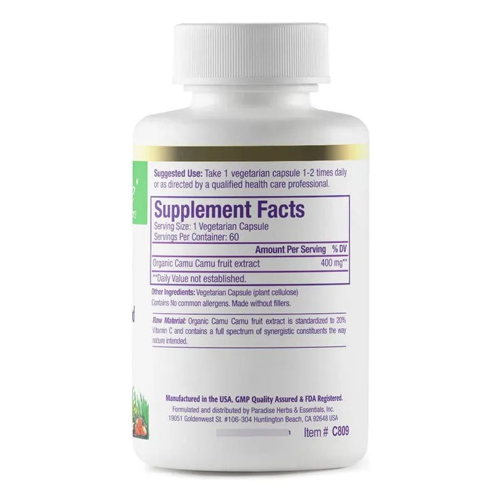 Camu Camu Orgánico 400 Mg 60 Cápsulas Ultra Puro Vegano Sin Gluten