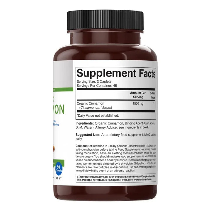 Canela Organica 1500 Mg 90 Tabletas Veganas Saludable y Sin Gluten