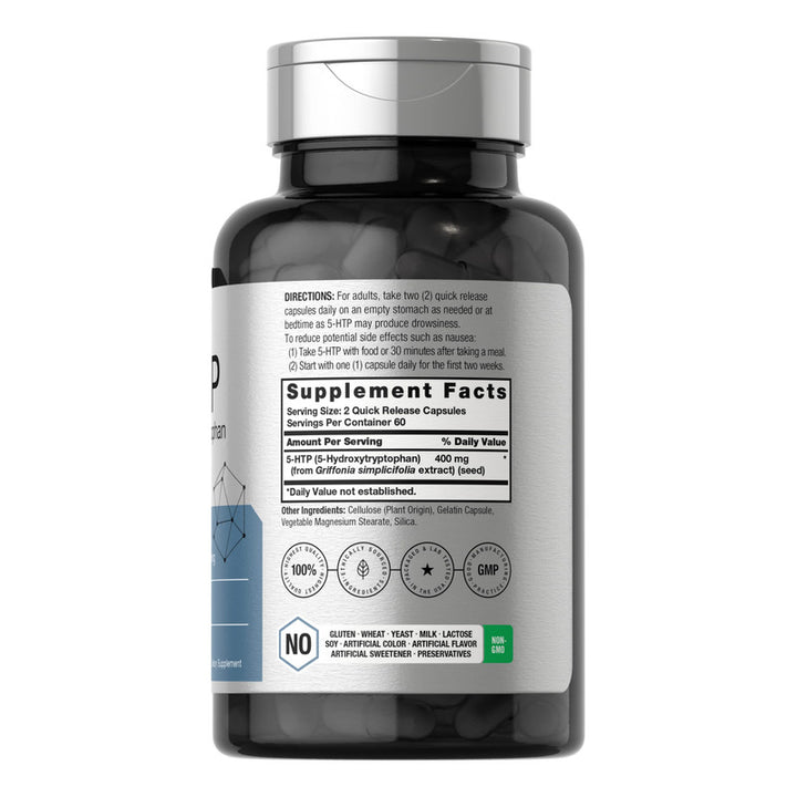 Capsulas 5htp 400 Mg 120 Unidades Sin Gluten Y OMG Extra Fuerte