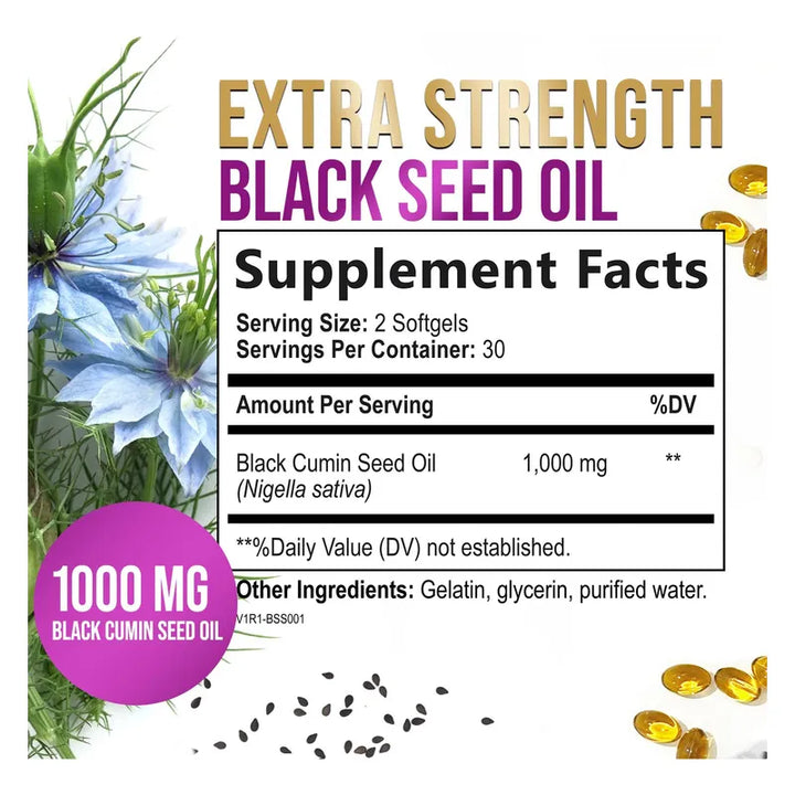 - Ingredientes Premium: Cada cápsula contiene 1000 mg de aceite de semilla negra natural.