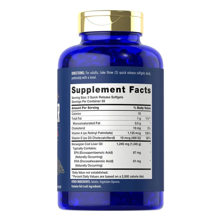 - Alta Concentración: 1245 mg de aceite de hígado de bacalao noruego por cápsula 🐟