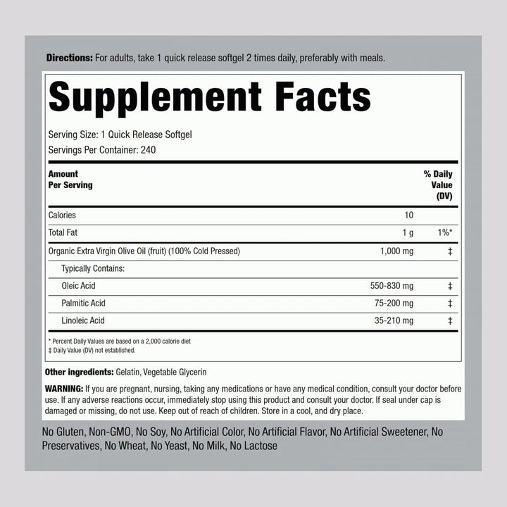 Capsulas Aceite Oliva Extra Virgen 1000 Mg 240 Unidades Prensado Frio Sin Gluten