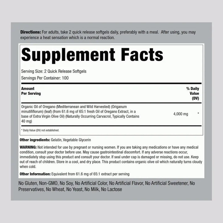 Capsulas Aceite Oregano 4000 Mg 200 Unidades Extracto Natural