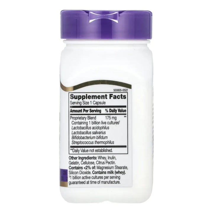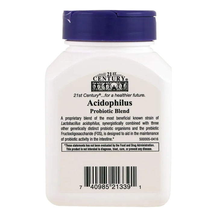 Imagina sentir la tranquilidad de saber que tu digestión está apoyada por un suplemento confiable y efectivo. Nuestro suplemento probiótico de 21st Century es más que una simple cápsula; es el aliado que necesitas para alcanzar un equilibrio intestinal óptimo. Cada una de las 100 cápsulas contiene Acidophilus, un probiótico clínicamente probado que promueve una digestión saludable y contribuye a que tu cuerpo absorba mejor los nutrientes que necesita para funcionar al máximo.