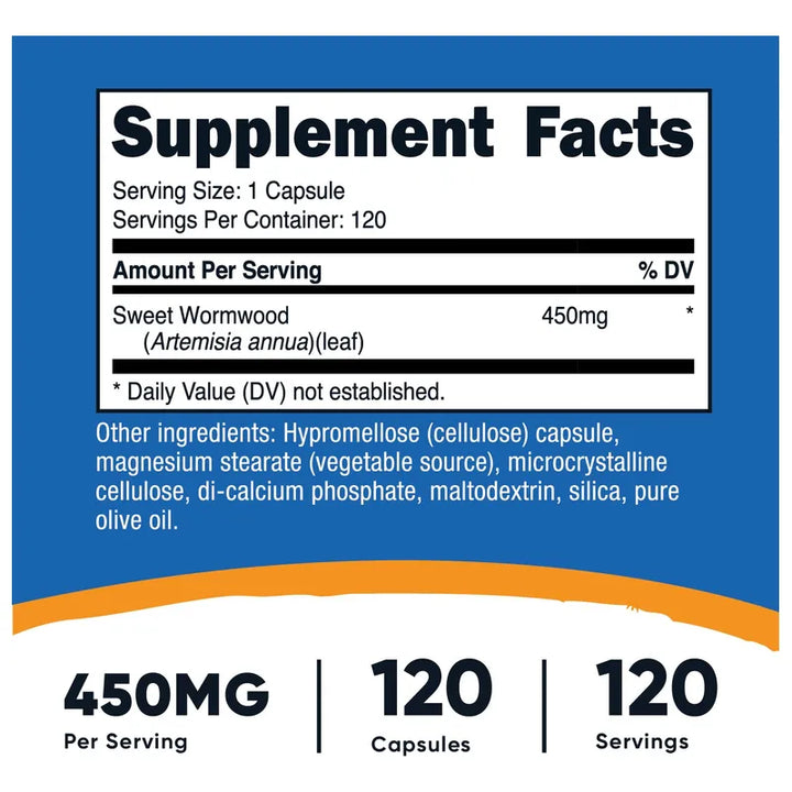 Con cada dosis, estás eligiendo un estilo de vida que aboga por el cuidado interno. Cada cápsula contiene 450 mg de ajenjo dulce, conocido por sus propiedades que promueven la salud digestiva. Este poderoso ingrediente es apto para vegetarianos y libre de gluten y OMG, asegurándote una experiencia pura y sin compromisos.